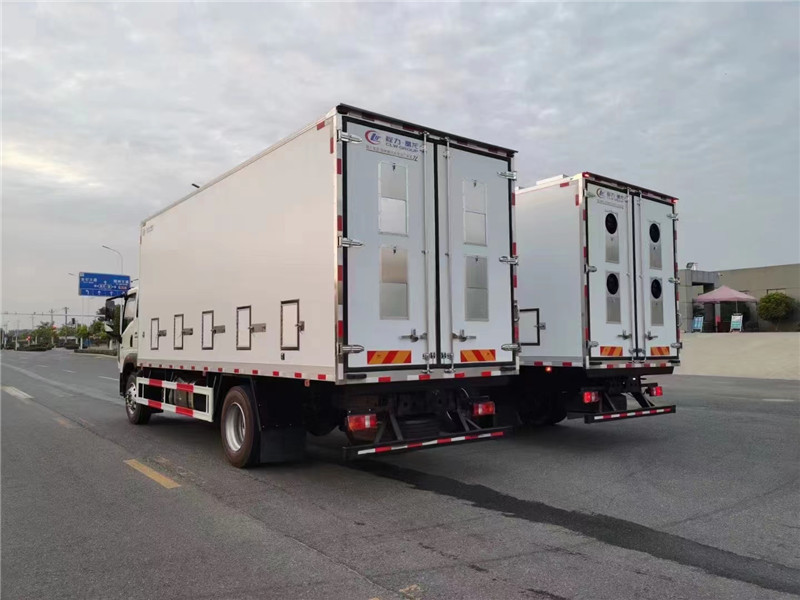 重汽豪沃6米8雞苗運輸車是一款國六6米8黃牌專業運輸雞苗,鴨苗,鵝苗等禽苗的專用車輛,,車廂兩側裝有多個百葉窗可保持空氣流通,溫度可在駕駛室隨意調節,專用于養殖場家禽運輸等。下面雞苗運輸車廠家來介紹這款重汽豪沃G5X禽苗運輸車的配置和特點。