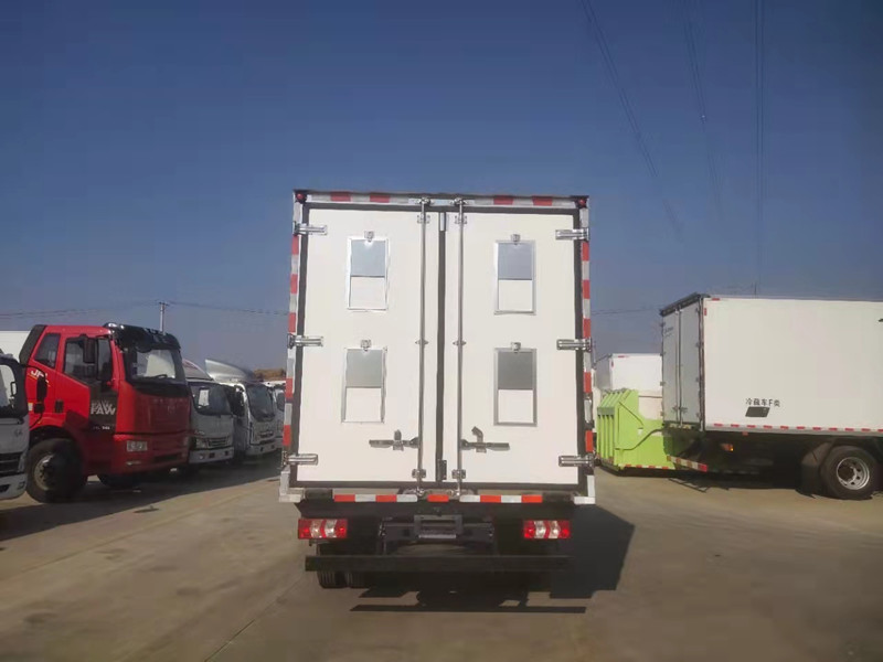 柳汽乘龍藍牌4米2雞苗運輸車上裝專用配置:雞苗箱體內尺寸4050x2100X2100(mm),廂體采用真空吸附、液壓吸附一體成型生產線制造,三明治復合粘接,保溫性能達到國家A級標準。廂板材質:內外壁板選用國內優質2.2mm玻璃鋼(不吸光、隔熱性好、硬度強、抗氧化);中間保溫層為XPS擠塑聚笨板;廂體厚度8CM。地板采用鋁花紋板,門邊條采用迷宮式橡膠密封條。廂體配件:廂體周邊鋁合金包邊,不銹鋼包角,不銹鋼門鎖,不銹鋼門框及合頁,廂體內節能LED照明燈。