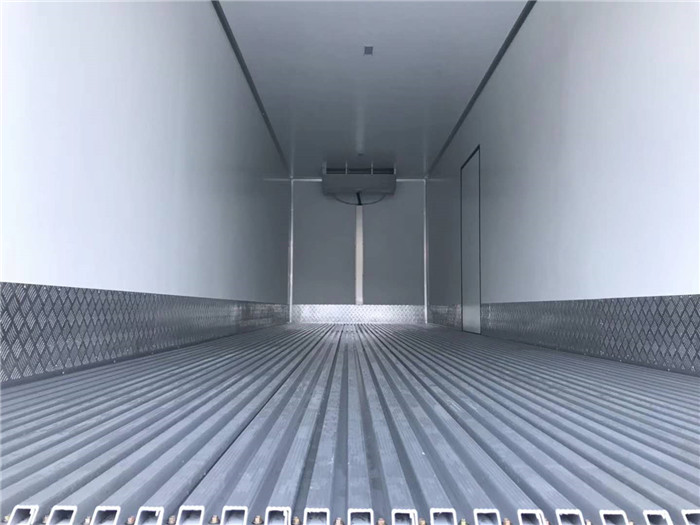 箱體尺寸長×寬×高為:9500×2420×2500約56.5立方,廂體采用程力晶龍新工藝制作。冷藏廂體內外板材采用冷藏車專用玻璃鋼,(可反射陽光),中間夾層為8CM聚氨酯發泡隔熱材料,(防火阻燃隔熱),千噸壓機廂板生產線壓制而成,配置箱體全為不銹鋼鎖件,不銹鋼包角,不銹鋼門框,帶有頂燈及防撞塊。廂體底部為玻璃鋼板,加裝鋁合金材質的通風槽。我廠的冷藏保溫車保溫材料選用進口級別XPS,吸水率≤1,導熱系數≤0.028W/mk,抗壓≥150Kpa,密度30~45kg/m3,使用國際上最為先進的第五代全封閉聚氨酯板塊粘接結構,廂板表面材料有玻璃鋼、不銹鋼、鋁合金、彩鋼板等材料可供選擇,廂體成型后具有質量輕,保溫系數高,抗沖擊力強,無滲漏等優點,對大氣、水和酸、堿、鹽等介質具有良好的耐腐蝕性和抗老化性 。通過優化設計,降低了整車質心,增大了有效容積。經測試,整車綜合節能率,使用壽命,比一般冷藏保溫廂高1~2倍。