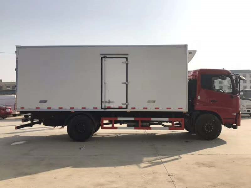 紅色東風(fēng)天錦國(guó)五6米8豬肉白條肉掛鉤冷藏車標(biāo)準(zhǔn)配置:箱體內(nèi)尺寸長(zhǎng)×寬×高為:6550×2440×2400,約38立方,廂體厚度為8厘米。冷藏廂體內(nèi)外板材采用冷藏車專用玻璃鋼,(可反射陽(yáng)光),中間夾層為聚氨酯發(fā)泡隔熱材料,(防火阻燃隔熱),千噸壓機(jī)壓制而成,配置箱體全為不銹鋼鎖件,不銹鋼包角,不銹鋼門框,帶有頂燈及防撞塊。廂體底部為鋁花紋板。我廠的冷藏保溫車保溫材料選用進(jìn)口級(jí)別XPS,吸水率≤1,導(dǎo)熱系數(shù)≤0.028W/mk,抗壓≥150Kpa,密度30~45kg/m3,使用國(guó)際上最為先進(jìn)的第五代全封閉聚氨酯板塊粘接結(jié)構(gòu),廂板表面材料有玻璃鋼、不銹鋼、鋁合金、彩鋼板等材料可供選擇,廂體成型后具有質(zhì)量輕,保溫系數(shù)高,抗沖擊力強(qiáng),無(wú)滲漏等優(yōu)點(diǎn),對(duì)大氣、水和酸、堿、鹽等介質(zhì)具有良好的耐腐蝕性和抗老化性 。通過(guò)優(yōu)化設(shè)計(jì),降低了整車質(zhì)心,增大了有效容積。經(jīng)測(cè)試,整車綜合節(jié)能率,使用壽命,比一般冷藏保溫廂高1~2倍。廂體加裝5排肉鉤導(dǎo)軌,底盤加裝鋁合金通風(fēng)槽。