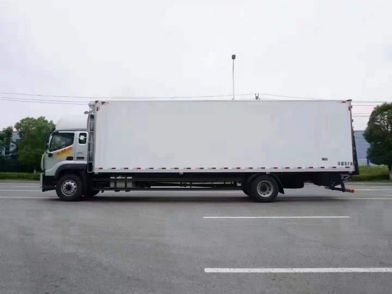 奧鈴大黃蜂單橋國六9米6冷藏車上裝配置:冷藏箱體尺寸:9580×2450×2500(mm),冷藏箱體采用斷橋隔熱技術!箱板是由鍍鋅管骨架加上環保防水木板一次成型,中間8CM新型環保輕量化保溫材料,加厚3.0玻璃鋼,高強度粘合劑、熱壓成型,外框采用304不銹鋼、加厚鋁型材包邊、27不銹鋼大門鎖、配件,箱體拼接出來不打膠無縫隙,降溫速度快、散溫慢、保溫效果好,門帶斜邊,副梁是510大梁鋼一次性折成,用壓板鎖緊,側護網和后保險杠一次性成型。